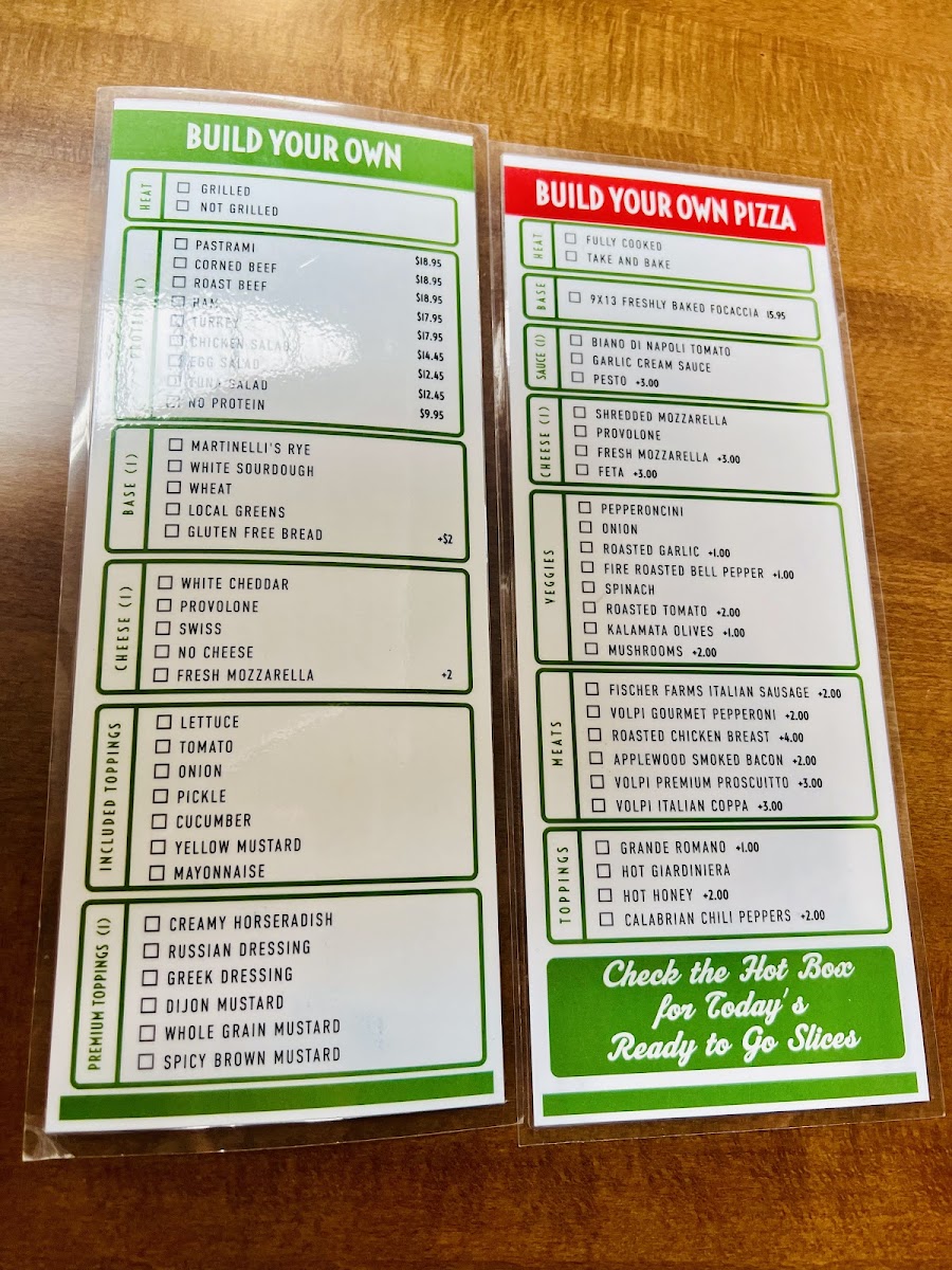 Freshly baked olive oil focaccia topped with house-made sauces and gourmet toppings. Check the hot box for today's by-the-slice flavors. Available in hot box until supplies run out.